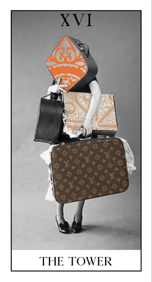 The collection is inspired by Belle Epoque and Art Noveau, what better place to celebrate than in Paris itself. Throughout researching Louis Vuitton and recent campaigns, I have found that they put a lot of focus on their store designs and visual merchandising. This is to engage their audience and create a memorable experience for their customer. People around the world visit this store to have this kind of special experience. The re-design of Maison Champs - Élysées was inspired by my original collage for this concept, which then became the Judgement card. Its strong contrast of bold colours against black and white creates a powerful image.